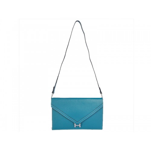 Clutch tipo sobre Hermes Pilot en azul con herrajes plateados