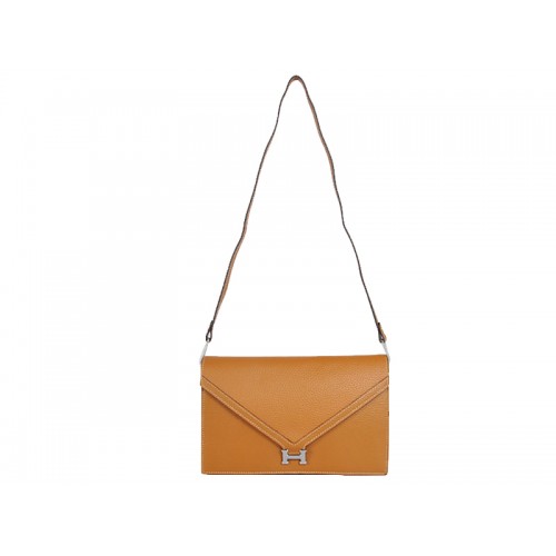 Bolso de mano Hermes Pilot Envelope en color camel con herrajes plateados