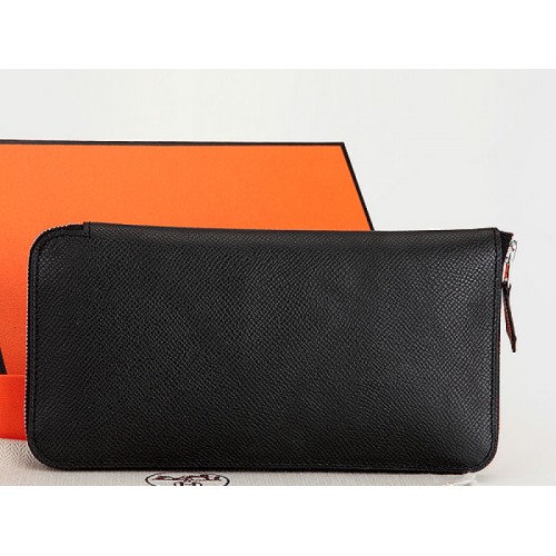 Cartera Hermes con cremallera original de piel de becerro Epsom negra