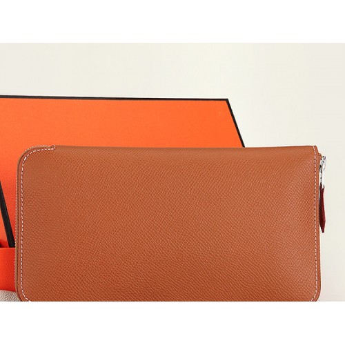 Cartera Hermes con cremallera original de piel de becerro Epsom color camello