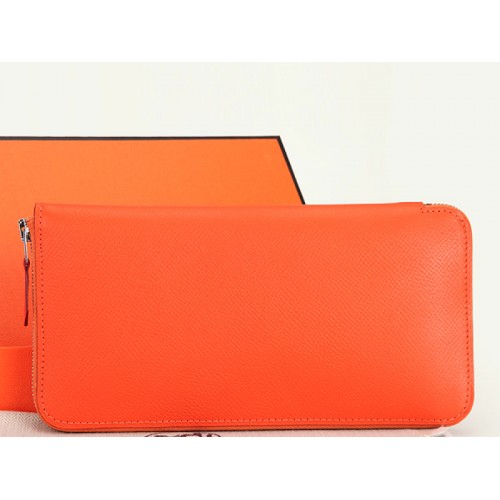 Cartera Hermes con cremallera original de piel de becerro Epsom naranja