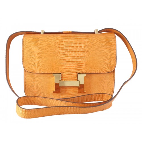 Bolso de hombro Hermes Constance 23 de piel de lagarto naranja