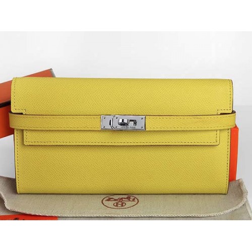 Cartera larga Hermes Epsom Original Kelly de piel de becerro en amarillo limón