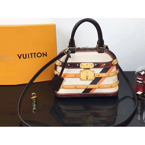 El bolso Alma BB Time Trunk es un pequeño homenaje a la herencia de fabricación de baúles de la Casa. Una combinación de piel de becerro y lienzo transformado con detalles de rayas pintadas crean un elegante efecto trompe l’oeil. Los herrajes de color dorado cepillado resaltan su mosaico otoñal de colores. Las asas superiores y una correa de cuero extraíble ofrecen múltiples opciones de transporte.
