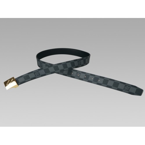 • Cinturón Damier Graphite con hebilla dorada y firma oblicua de Louis Vuitton