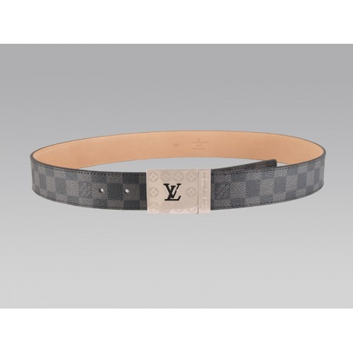 Cinturón Louis Vuitton Damier Graphite con hebilla plateada con logotipo