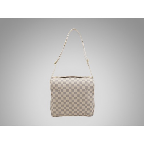 - Lona recubierta Damier Azur con ribete de piel de vaca natural