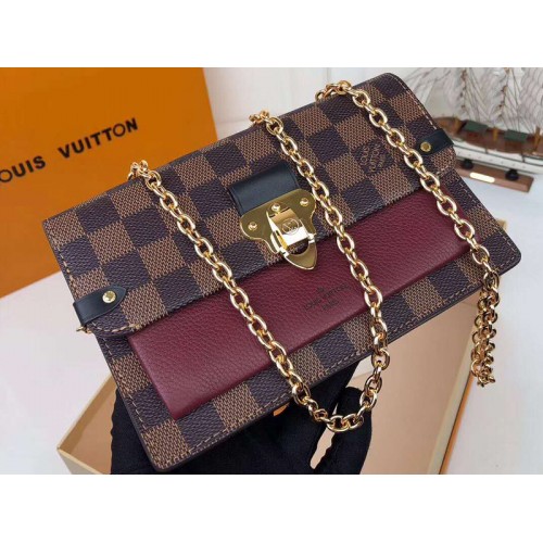 Cartera con cadena Louis Vuitton Damier Canvas Ebene Vavin Burdeos n60222