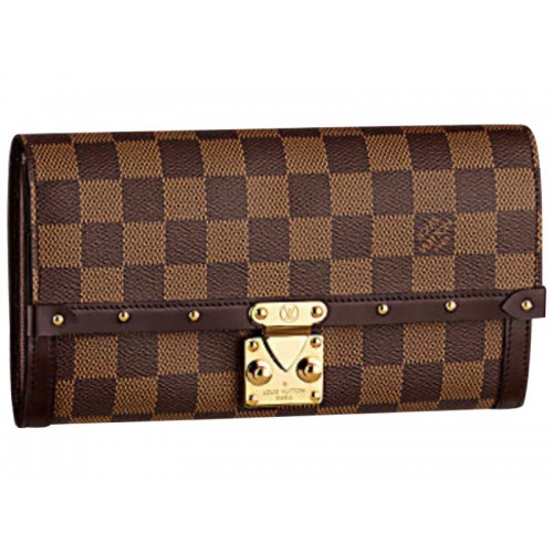 Con su histórico candado en forma de S y sus tachuelas decorativas, la elegante Venice Wallet en lienzo de Damier Ebene rinde homenaje a nuestra herencia como fabricantes de baúles de lujo. Gracias a su interior espacioso y funcional, también se puede utilizar como un elegante bolso de mano.
