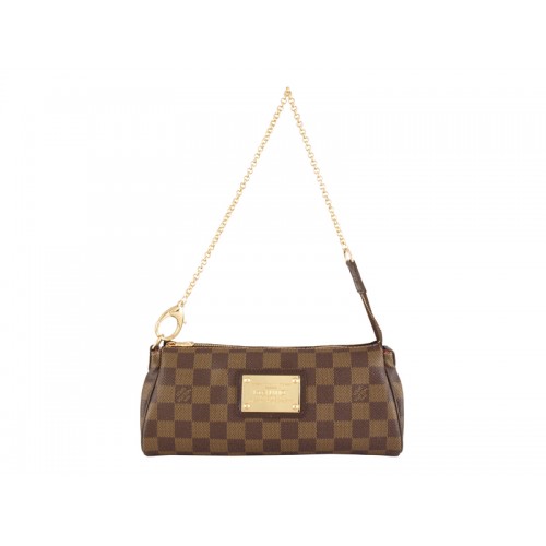 El diseño es muy elegante y con estilo. El número de modelo es N51135.Está fabricado en lona Damier y piel auténtica. Viene con una correa de eslabones de cadena de oro de 15" y una correa de cuero intercambiable adicional de 47". En el interior hay un forro con lona roja. Preciosa placa dorada de Louis Vuitton se coloca al frente.