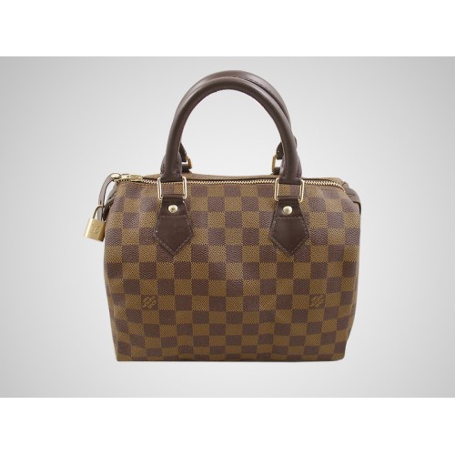 El modelo Speedy cuenta con un amplio espacio y un cierre de cremallera con candado. Viene en lona Damier y sus asas redondeadas lo convierten en un práctico bolso urbano para la cabeza de mano.