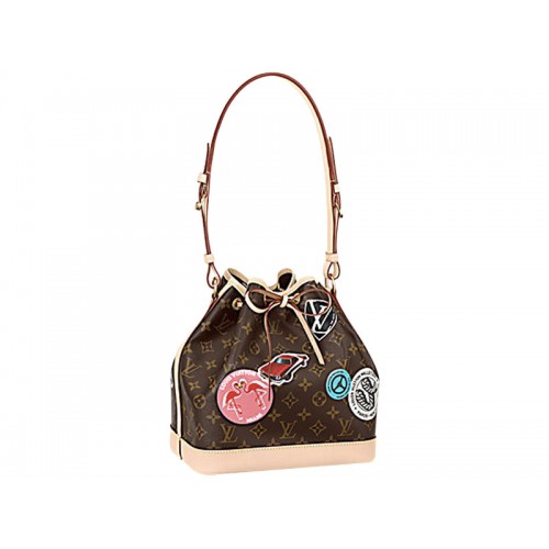 Confeccionada en lienzo Monogram con la divertida versión del director creativo Nicolas Ghesquieres de las clásicas pegatinas de hotel que Gaston-Louis Vuitton solía coleccionar durante todos sus viajes, esta Petit Noe es elegante y eminentemente práctica sin esfuerzo.