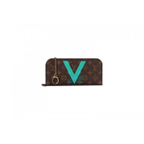 Un atrevido motivo en V inspirado en un anuncio de Louis Vuitton de la década de 1920 adorna la elegante billetera Insolite en lienzo Monogram. La abertura de doble cremallera, con tiradores de cuero, permite un fácil acceso a las monedas sin abrir la billetera por completo.