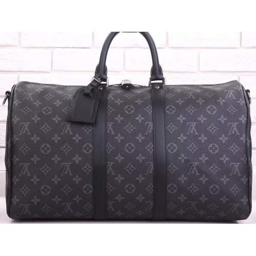 Este icónico Keepall 45 Bandoulière está diseñado con nuestro nuevo e icónico lienzo Monogram Eclipse en negro y gris. Desde 1930, el bolso Keepall ha viajado junto a generaciones de elegantes trotamundos. Esta versión con asas de cuero cómodas de sostener, una correa para uso casual en todo el cuerpo y un candado brillante contiene todo lo esencial para una excursión nocturna.