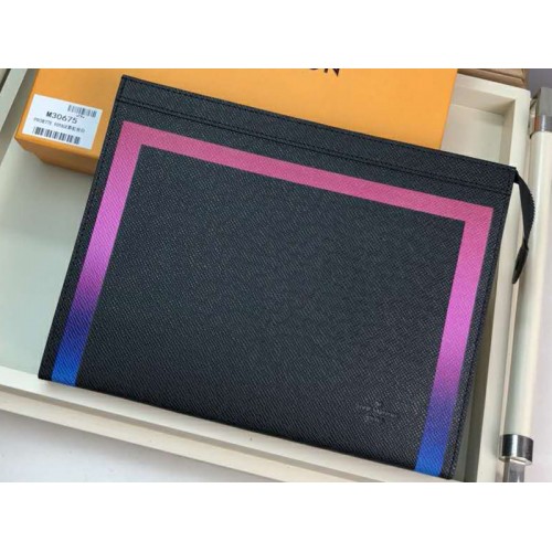 Louis Vuitton Taiga - Cartera de piel Voyage mm con ribete colorido en negro m30675