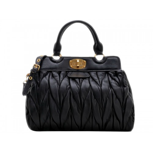 Bolso satchel de doble asa Matelasse de Miu Miu, color negro