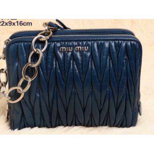 Bolso de hombro mini Miu Miu Glazed Matelasse de piel azul