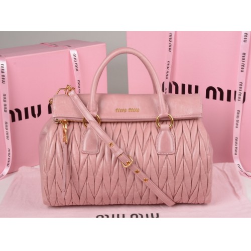 Bolso satchel con cremallera de piel matelasse glaseada Miu Miu rosa