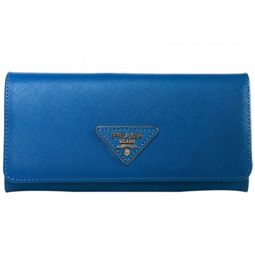 Cartera Prada de piel saffiano con logotipo triangular azul