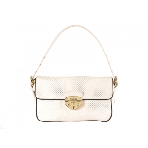Bolso de hombro Prada Perforated Collection de piel de vacuno en blanco