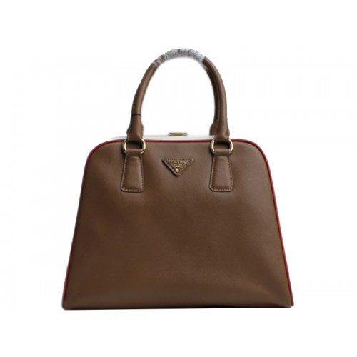 Bolso Prada Saffiano con asa superior enmarcada, color café
