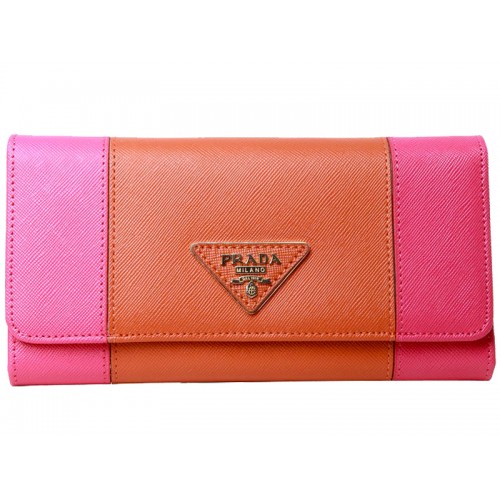 Cartera Prada de piel saffiano triple en rosa intenso con naranja
