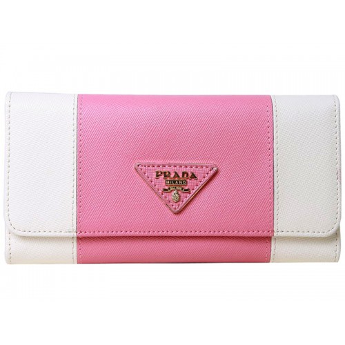 Cartera Prada de piel saffiano de tres pliegues en blanco y rosa