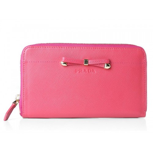 Cartera Prada Saffiano con cremallera y detalle de lazo en rosa intenso