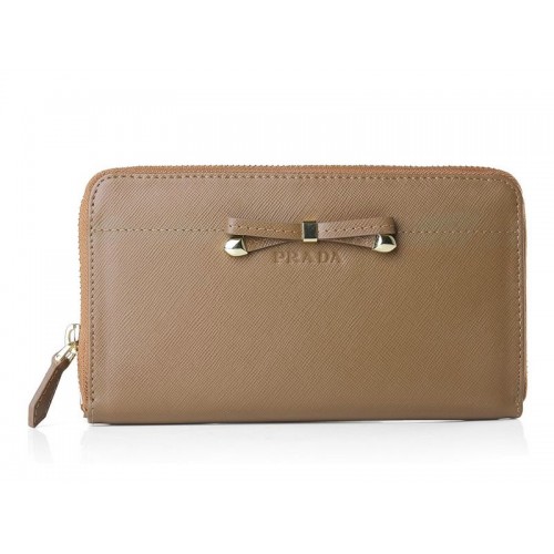 Cartera Prada Saffiano con cremallera y detalle de lazo en color caqui