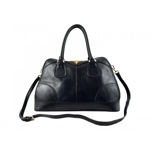 Bolso Prada de piel de ciervo brillante con asa superior, color negro