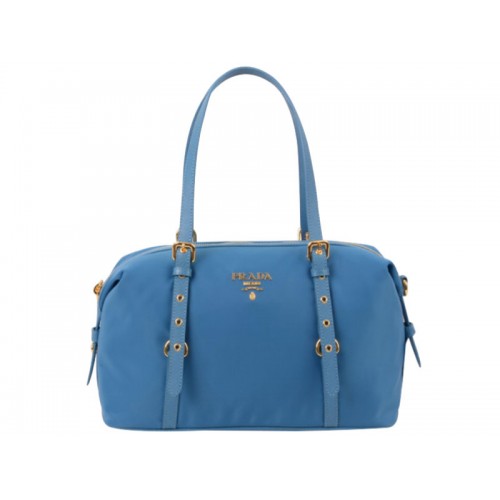 Prada Tessuto Bauletto Satchel Bolso De Hombro Azul