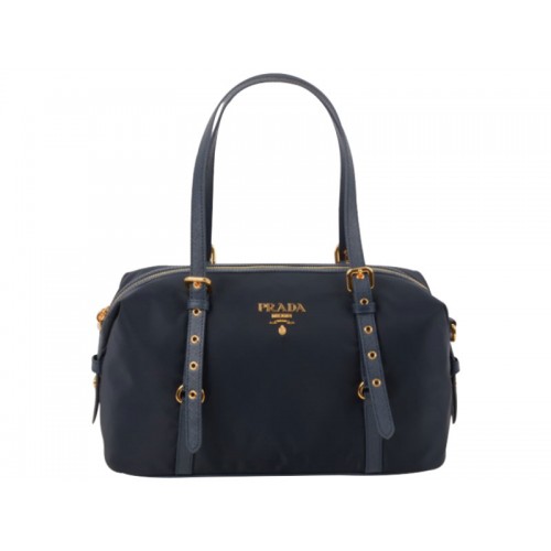 Prada Tessuto Bauletto Satchel Bolso De Hombro Azul Oscuro
