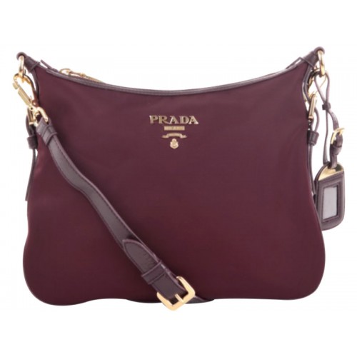 Bolso bandolera Prada Tessuto de nailon con ribete de piel en color burdeos