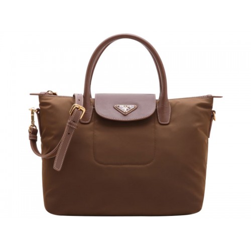 Bolso Prada Tessuto de nailon con ribete de piel, marrón