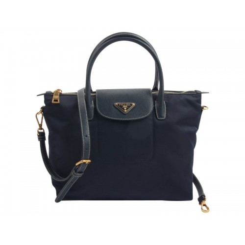 Bolso Prada Tessuto de nailon con ribete de piel azul oscuro