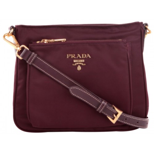 Bolso bandolera Prada Tessuto de nailon saffiano con piel en color burdeos