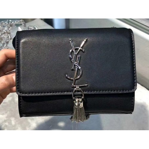 MONOGRAMA SAINT LAURENT CHAIN TASSEL WALLET FEAUTRING UNA CORREA DE HOMBRO DE CADENA METÁLICA Y CUERO EXTRAÍBLE E INICIALES YSL ENTRELAZADAS DE METAL.