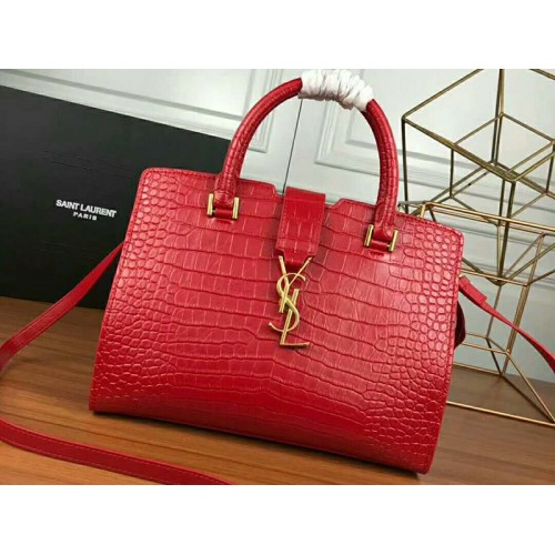 Saint Laurent Cabas Ysl Pequeño En Piel Lisa Roja