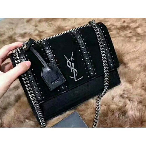 Saint Laurent Sunset Medium en piel, ante y tachuelas negras