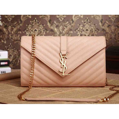 BOLSO FRONTAL CLASSIC FLAP CON FIRMA YSL DE METAL EN TONOS DORADOS, COSTURAS MATELASSÉ Y CORREA DE CADENA GOURMETTE DOBLE DE METAL QUE SE PUEDE USAR EN TODO EL CUERPO O EN EL HOMBRO.