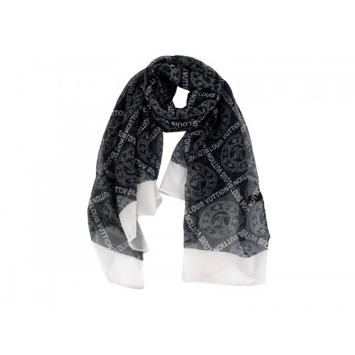 Bufanda Louis Vuitton con monograma de flores y firma con efecto perforado, color negro